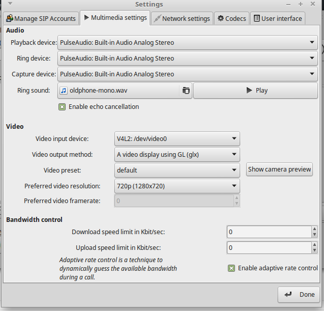 Установка клиента Linphone для подключении к серверу видеоконференций OpenMCU.